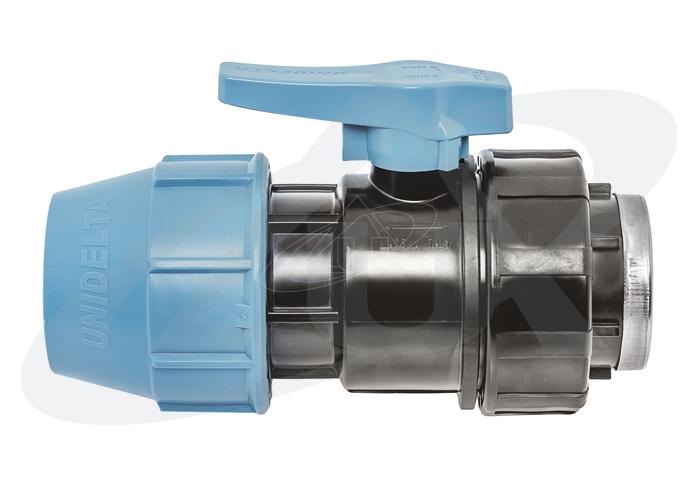 Vanne à boule « UNIDELTA », femelle x compression en PVC et PE.
